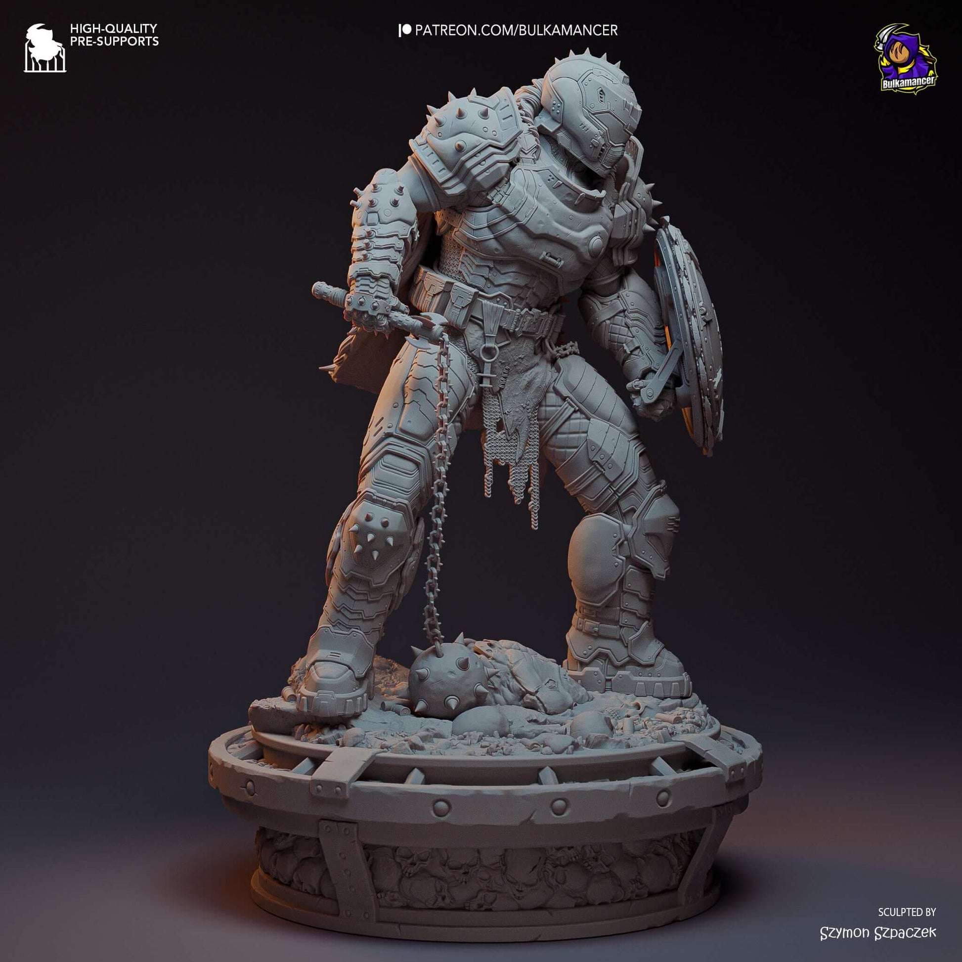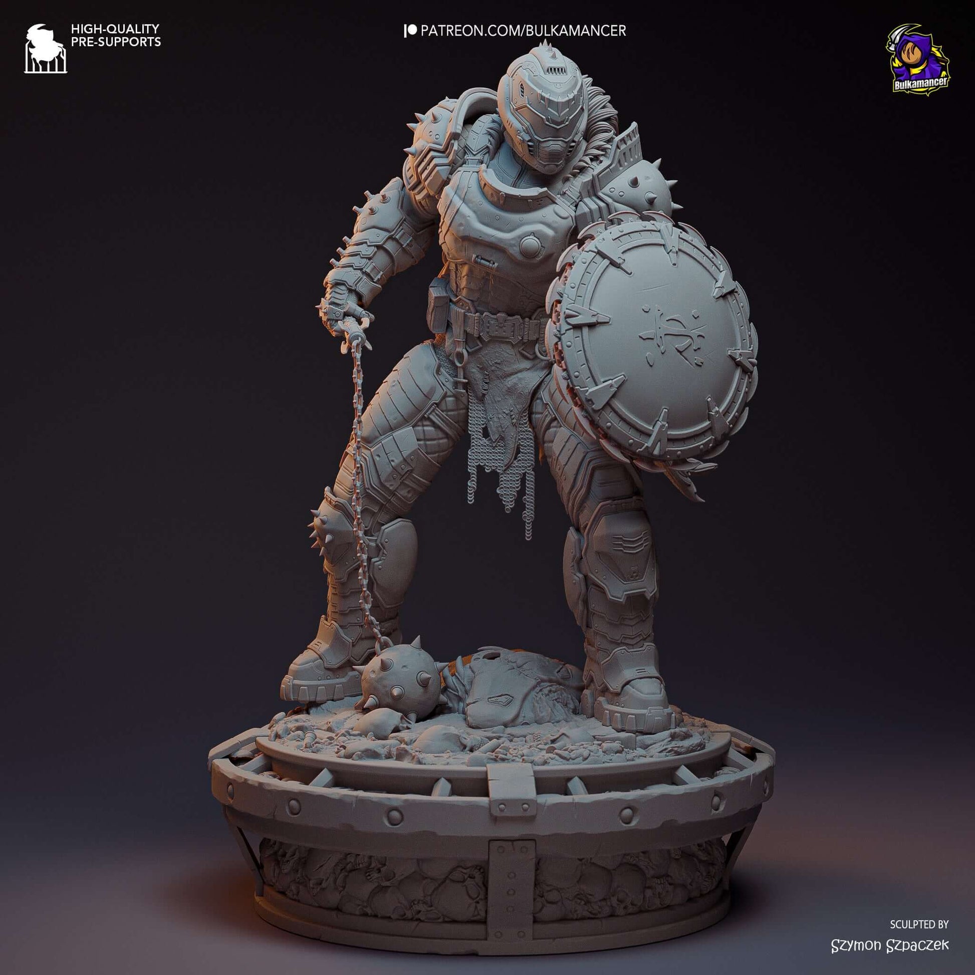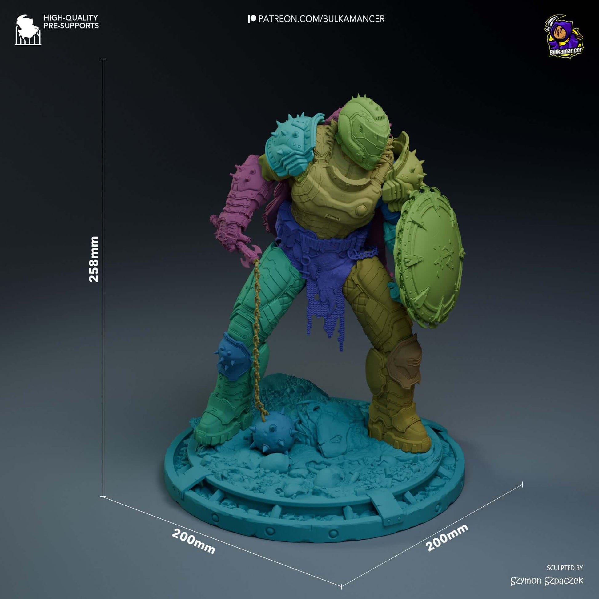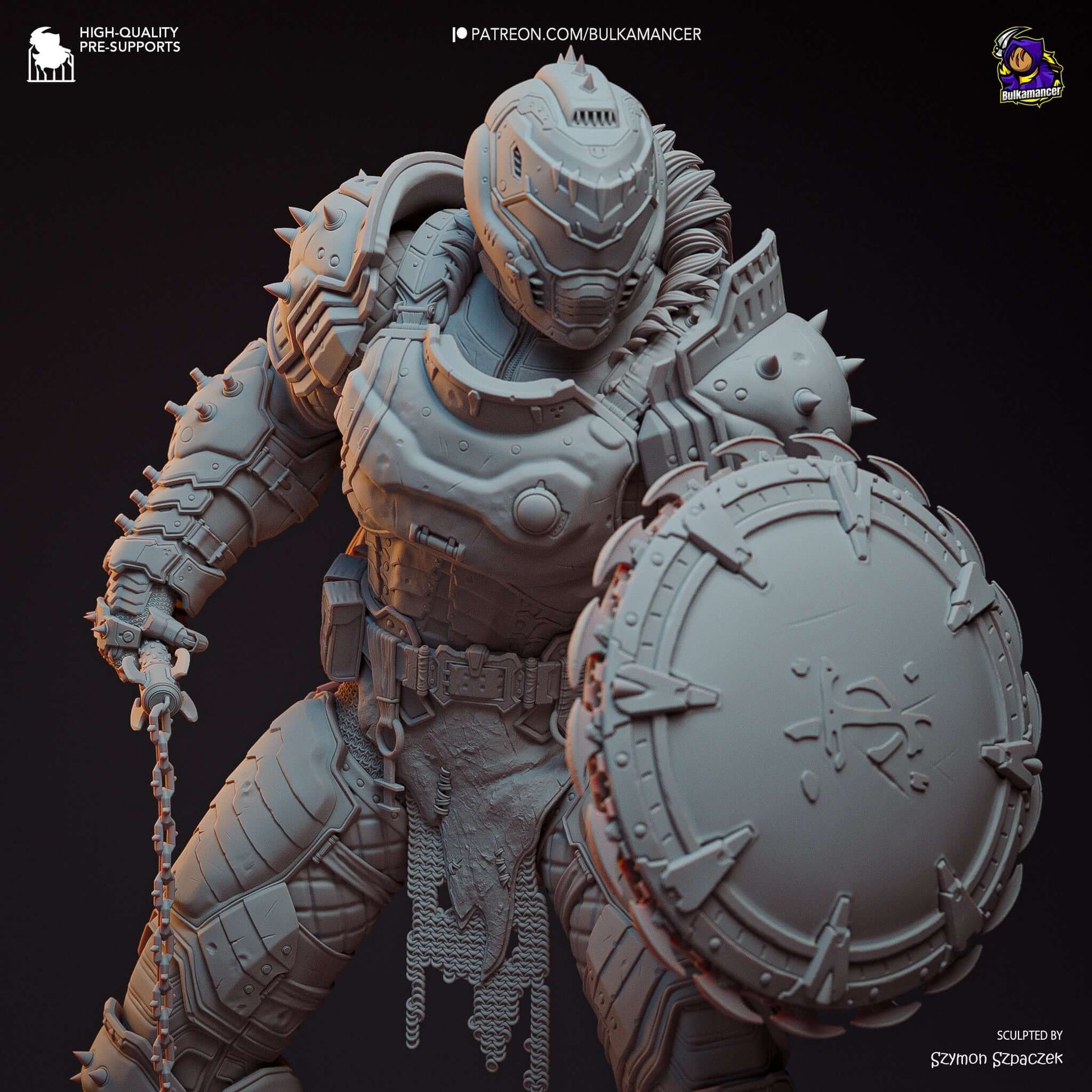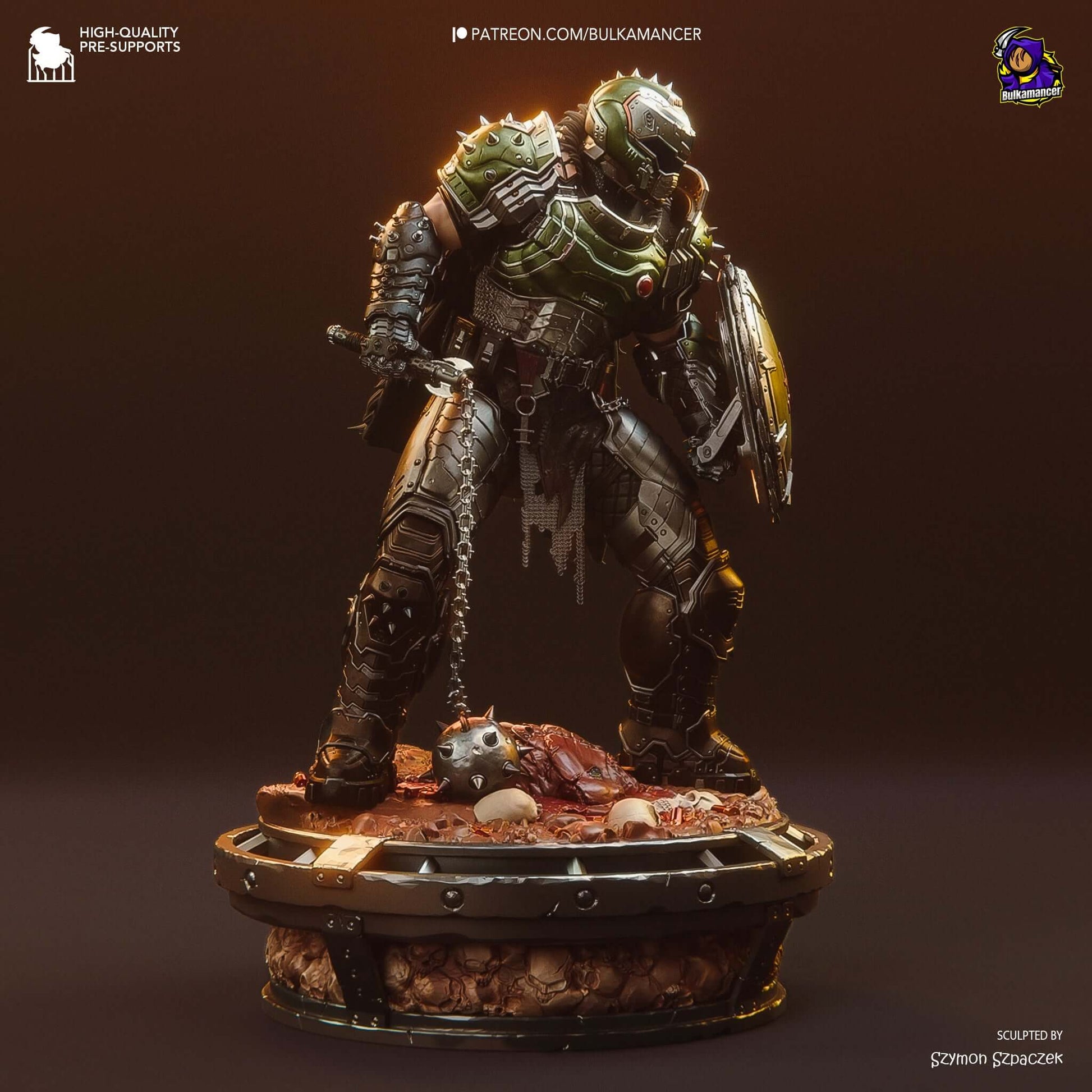 Figurine of Doom Slayer from Doom the Dark Ages, 3D resin printed.
