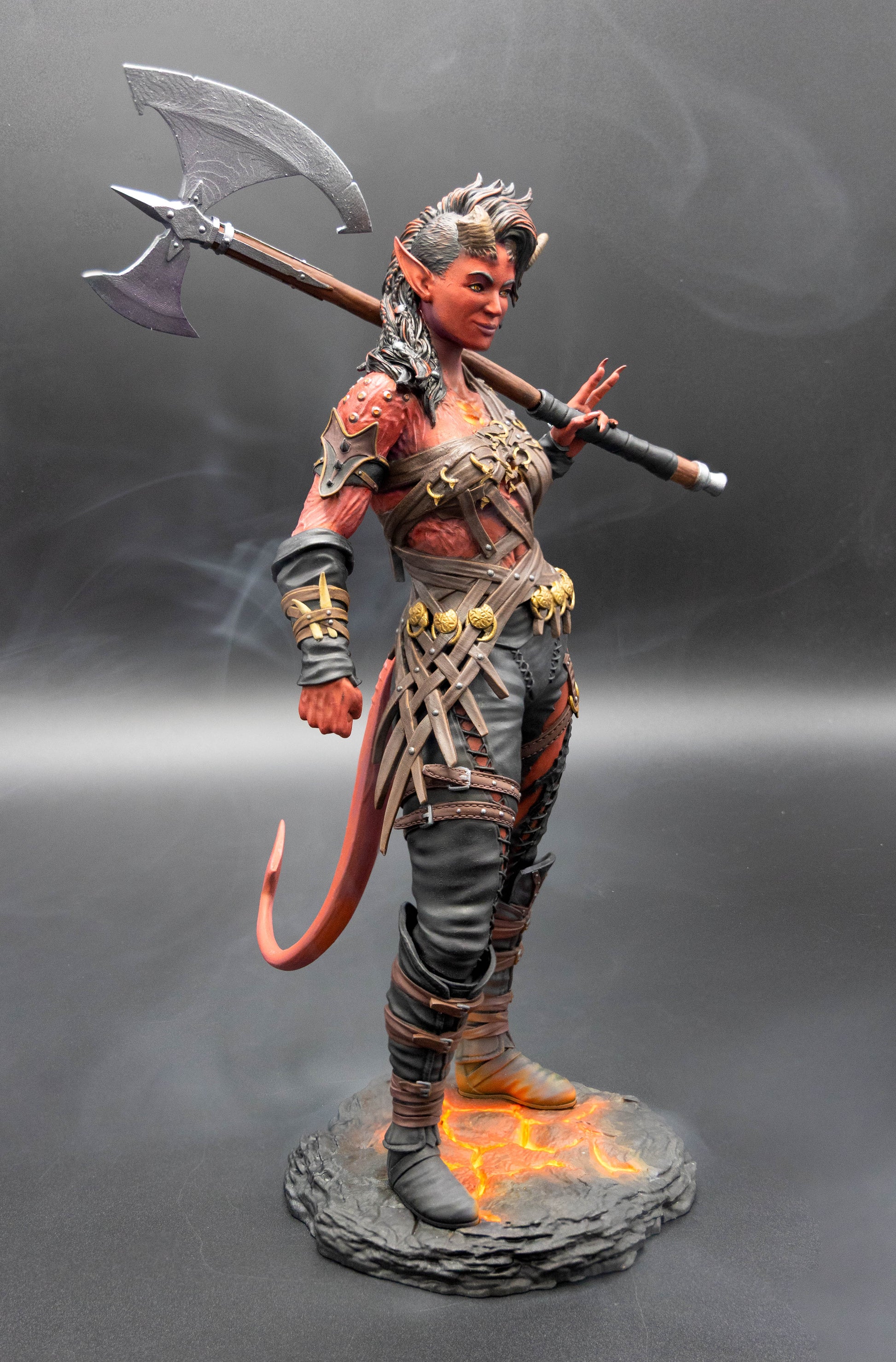 Figurine of Karlach from Baldur's Gate 3, 3D resin printed.