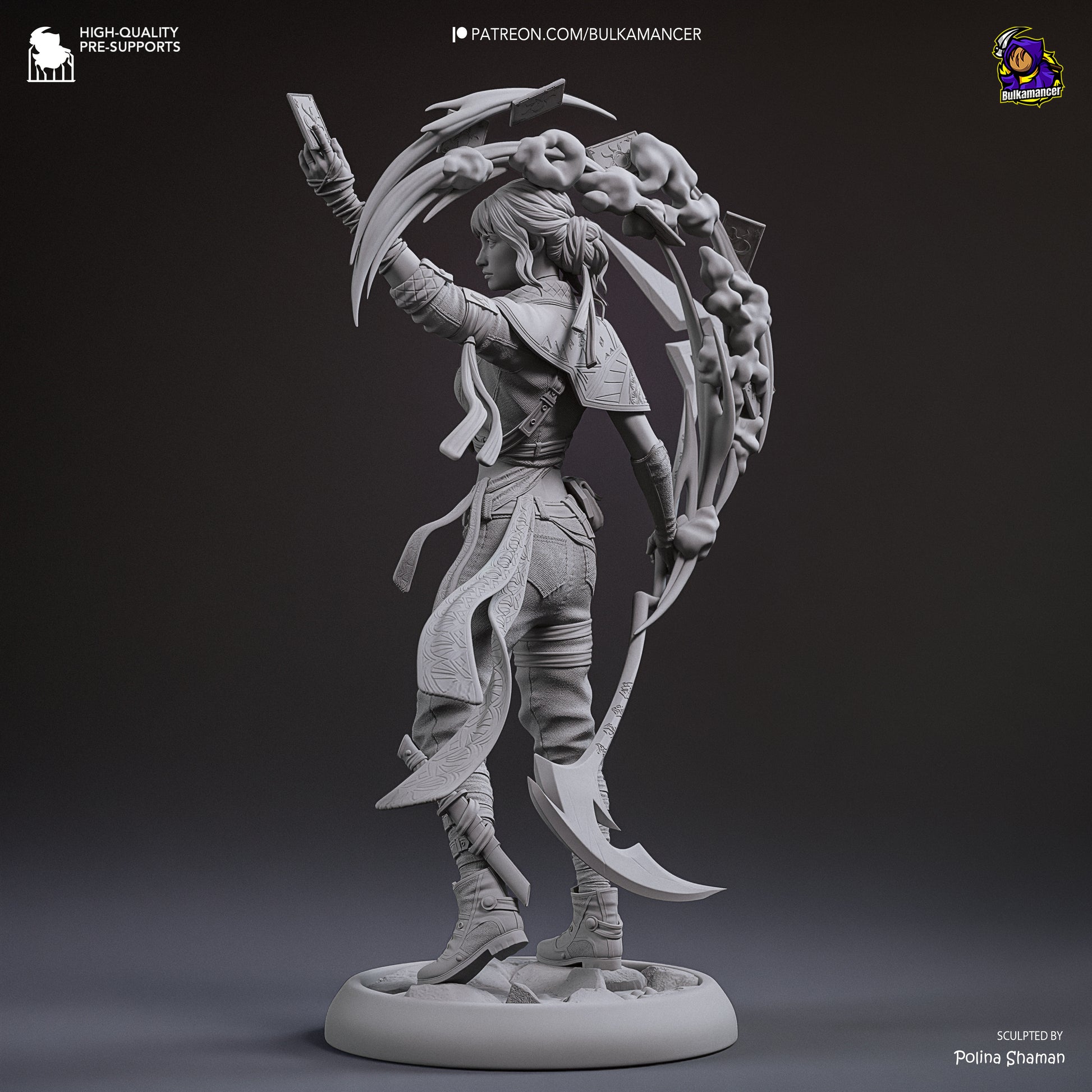 The statue is 25cm tall, two different bases are available.