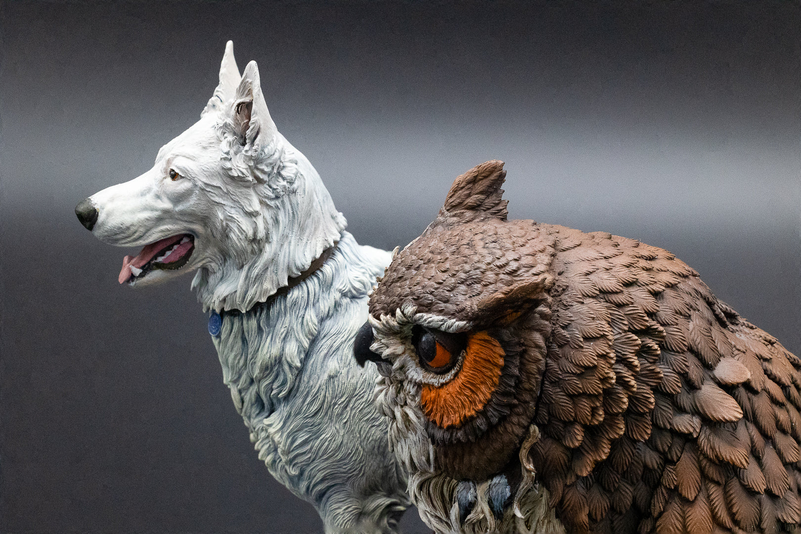 Figurines of Scratch and Owlbear from Baldur's Gate 3, 3D resin printed.