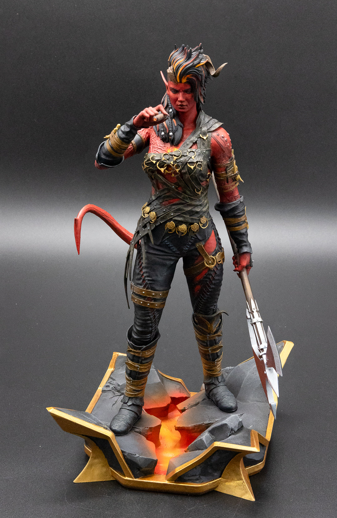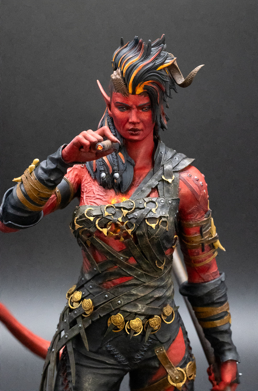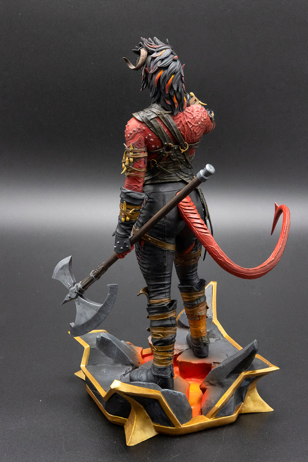 A figurine of Karlach from Baldur's Gate 3, 3D resin printed.