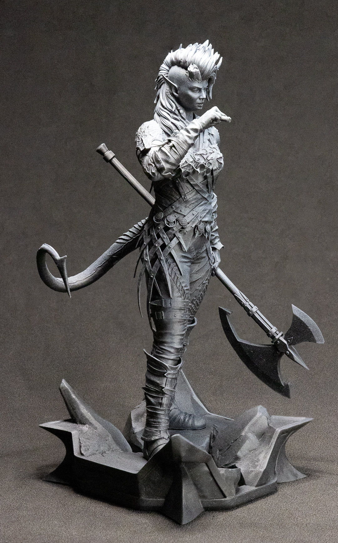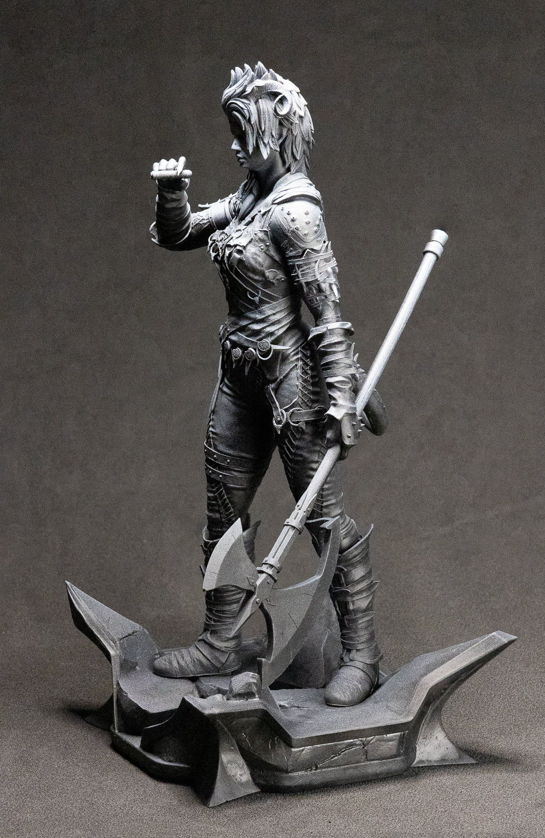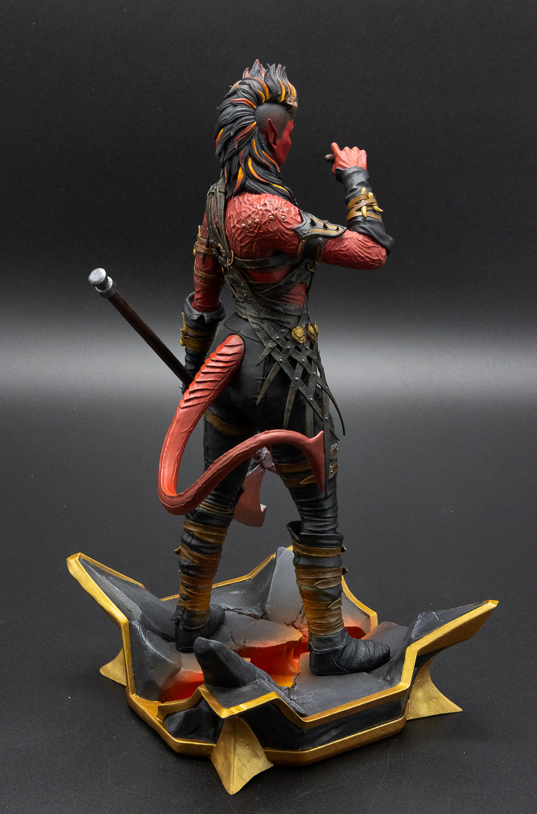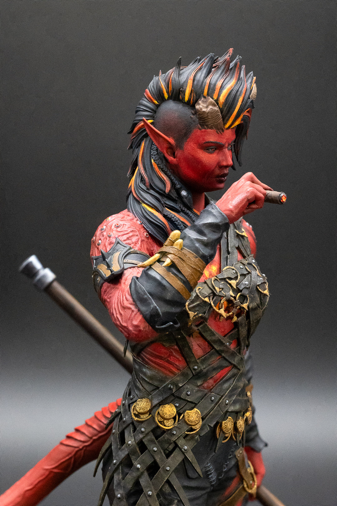 A figurine of Karlach from Baldur's Gate 3, 3D resin printed.