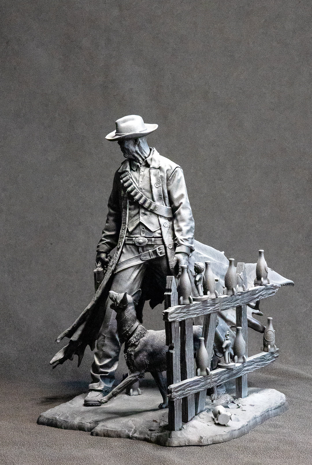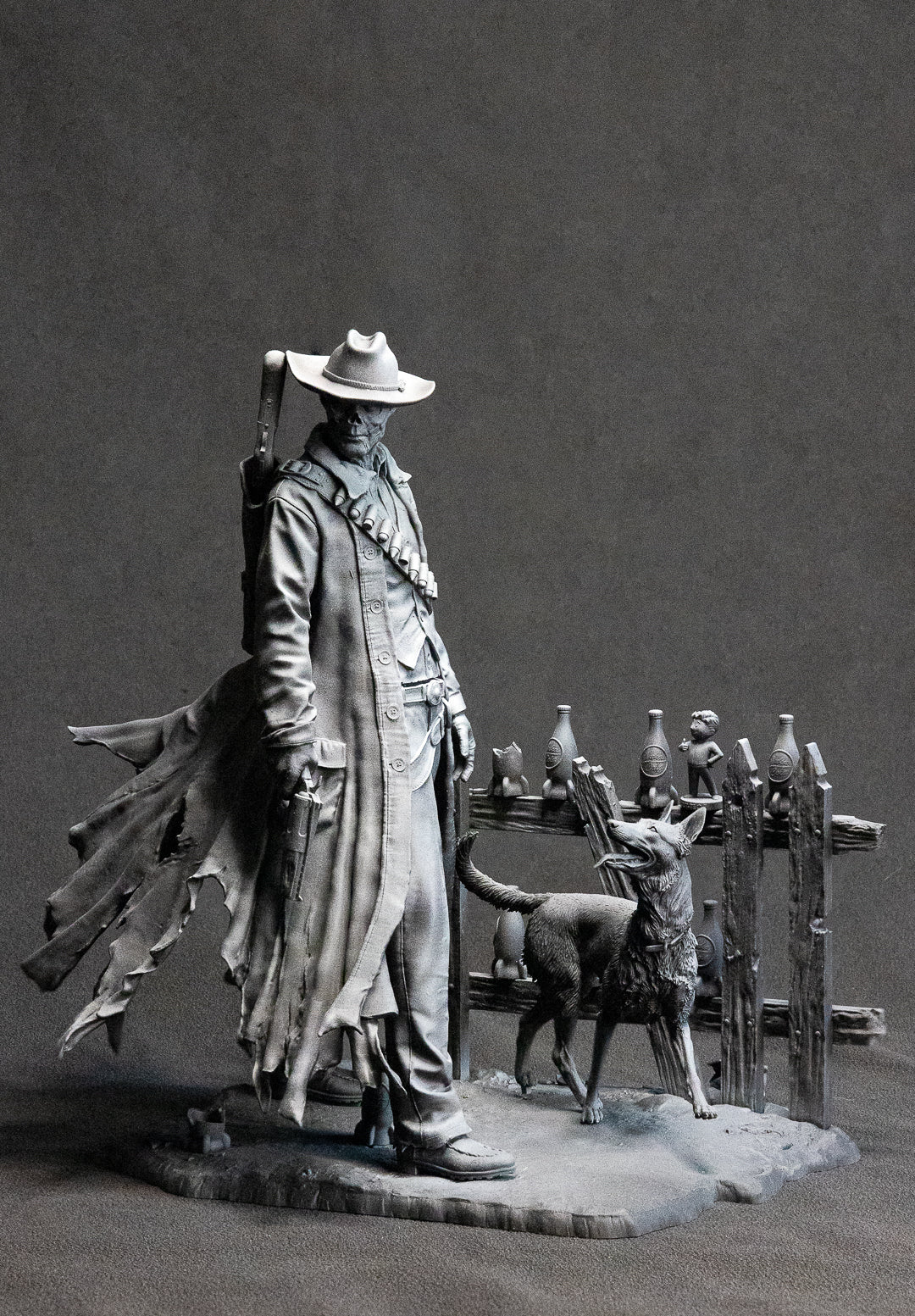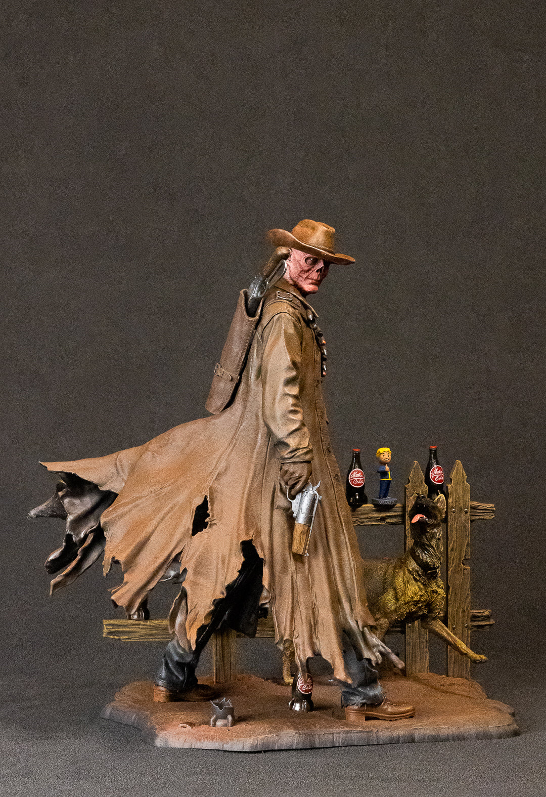 Diorama of The Ghoul and Dogmeat from the Fallout TV series, 3D resin printed.